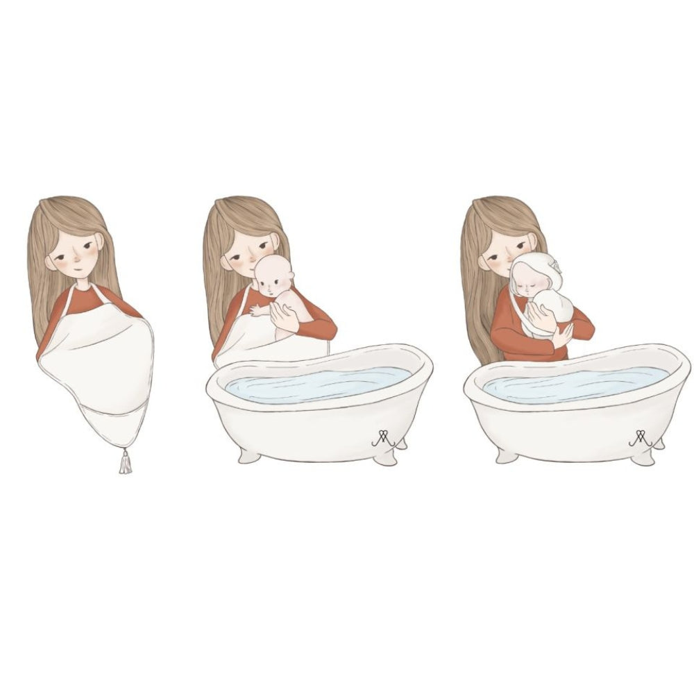 Das Memi Babyhandtuch hat eine Kapuze, einen Haltegriff an der Spitze und eine funktionelle Nackenstütze für die Eltern zum einfachen Stillen.