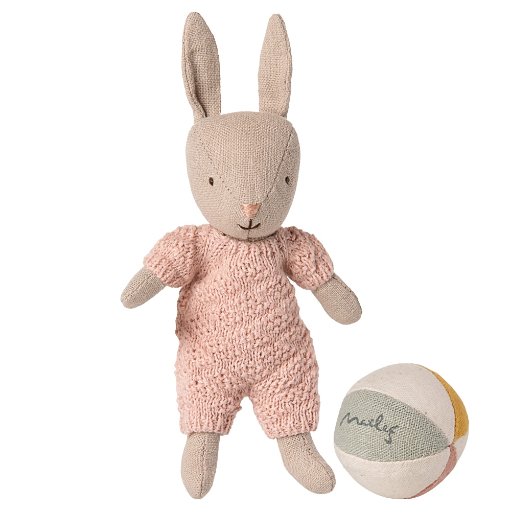 Das Set enthält einen kleinen Ball und ein weiches Häschen in Mikrogröße, das mit Magneten in den Pfoten ausgestattet ist.
