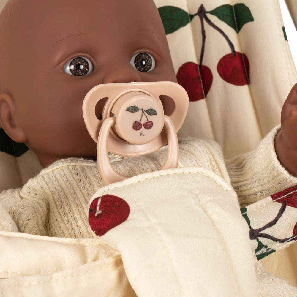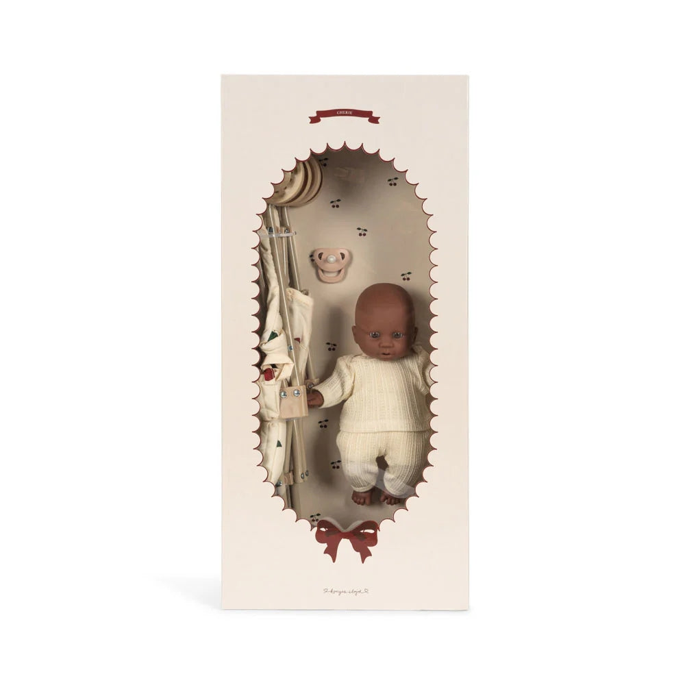 Das Konges Slojd Cherie Set ist das perfekte Geschenk für die jüngsten Liebhaber des Hausspiels. Es besteht aus einem klassischen Puppenwagen mit zeitlosem Kirschenmuster und einer entzückenden Puppe, die zusammen ein Set bilden, mit dem man sofort spielen kann.