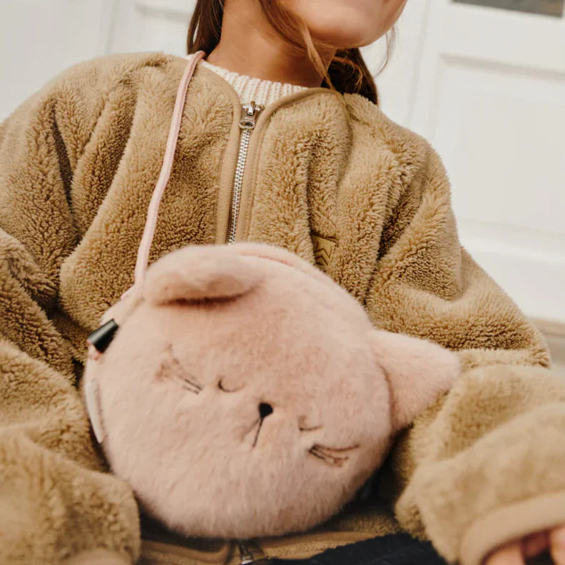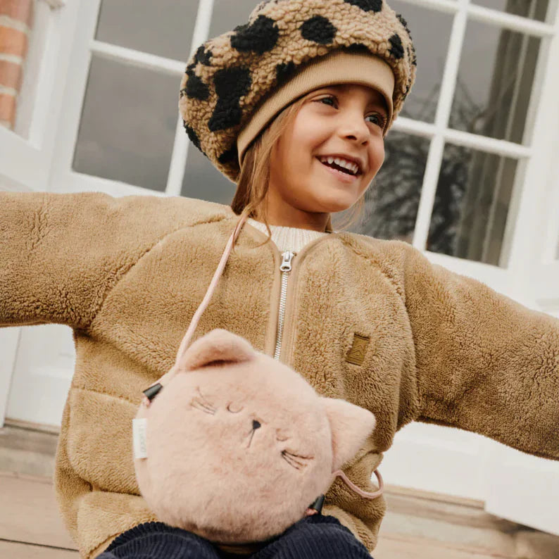 Das flauschig-weiche Material und das markante Kätzchen heben sie von anderen Kinderhandtaschen ab.