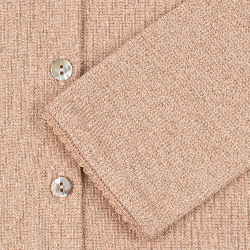Der klassische Schnitt mit Rundhalsausschnitt, zarten Rippbündchen und eleganten Perlmuttknöpfen macht den Pullover für Mädchen zu einem perfekten Begleiter sowohl für den Alltag als auch für elegantere Outfits.