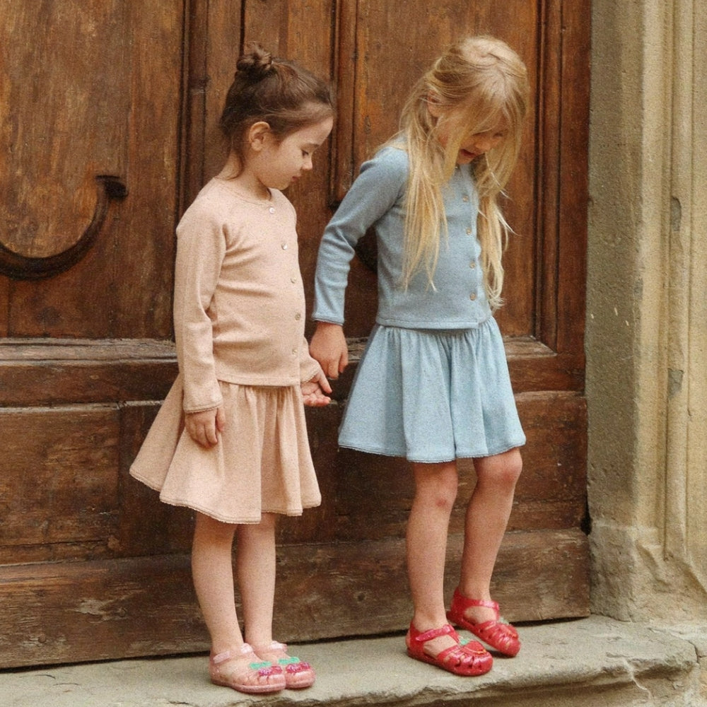 Das Modell in der Farbe Erdbeere verleiht jedem Ensemble Charme. Die für die Marke Konges Slojd charakteristische Liebe zum Detail zeichnet dieses Kleidungsstück durch seine außergewöhnliche Ästhetik und Haltbarkeit aus.
