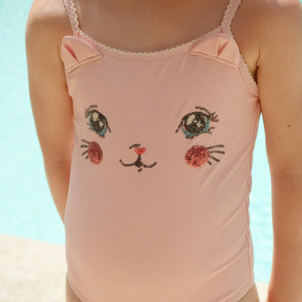 Das niedliche Katzengesicht auf der Vorderseite macht diesen Badeanzug für Mädchen zu einem Blickfang und perfekt für den Sommer.