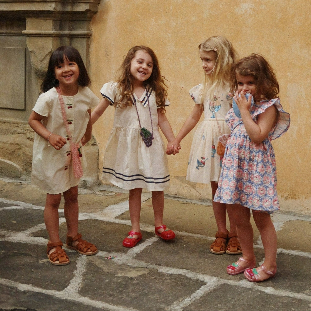 Das Slojd-Kleid von Konges für Mädchen ist ein leichtes, luftiges Modell, das perfekt für Sommertage geeignet ist.