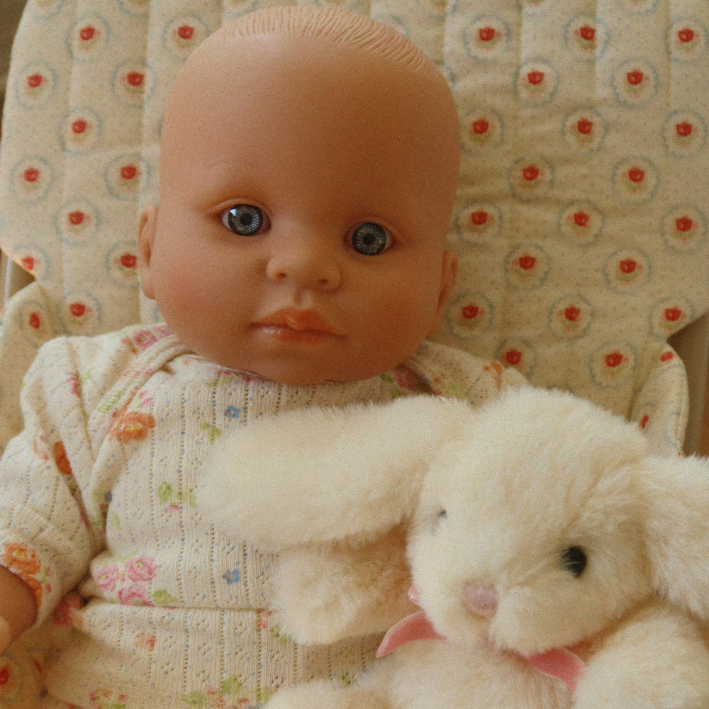 - Material: Körper aus Vinyl, Kleidung aus Baumwolle, Füllung aus Polyester, Teddybär 100% Polyester