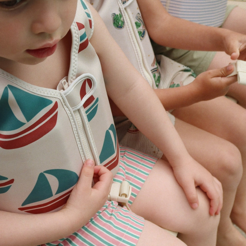 Die Schwimmwesten von Konges Slojd haben innenliegende Schaumstoffeinsätze, die an die Fähigkeiten Ihres Kindes angepasst werden können.