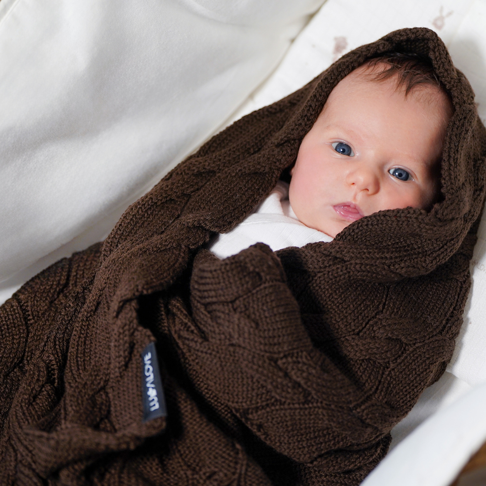 Lullalove Decke aus Merinowolle 80x100 cm Schoko