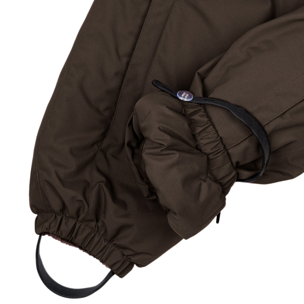 Der Mikk line Kleinkind-Winteranzug ist aus strapazierfähigem Nylon mit umweltfreundlicher Fluorbeschichtung BIONIC-FINISH® ECO und einer weichen, warmen Polyesterfüllung gefertigt.