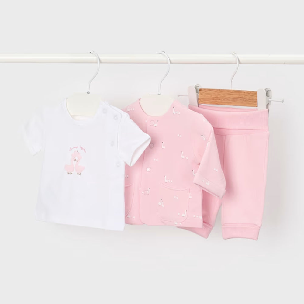 Mayoral Baby 3-teiliges Trainingsanzug-Set mit Sweatshirt, Hose und T-Shirt Baby Pink