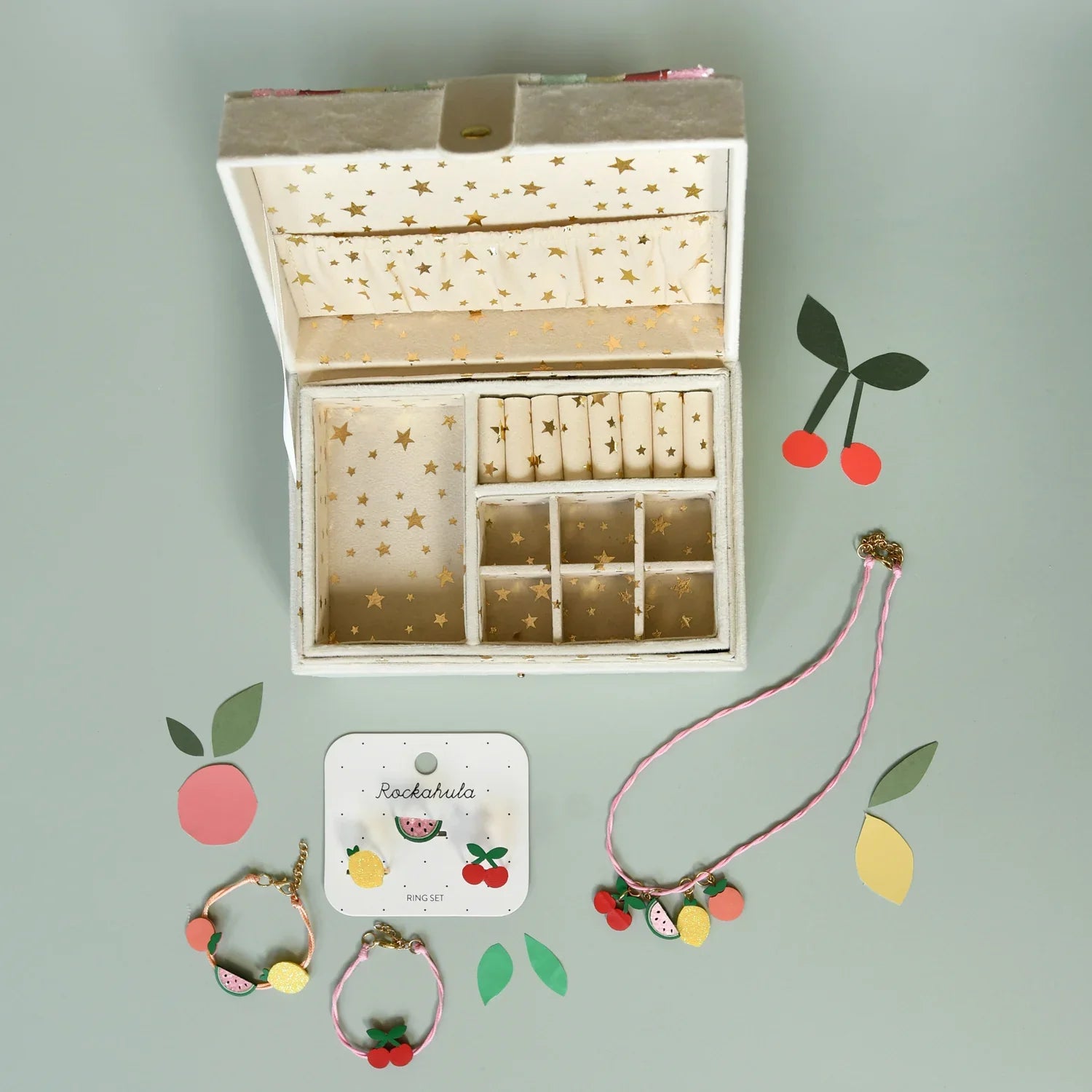 Die Rockahula-Schmuckschatulle ist ein niedlicher und praktischer Ort, an dem ein Kind seine Schätze sicher aufbewahren kann.