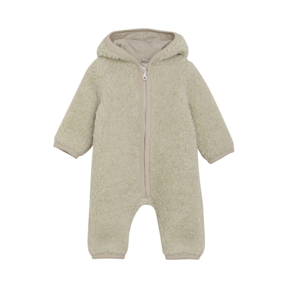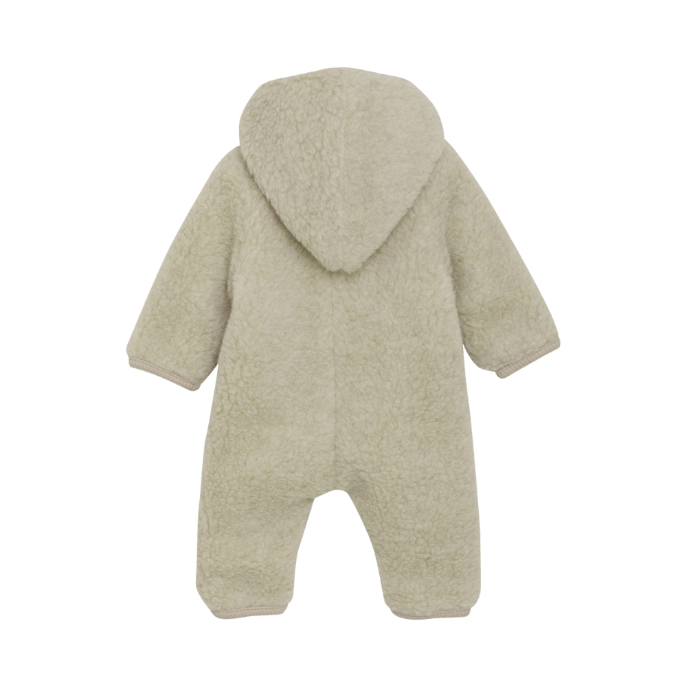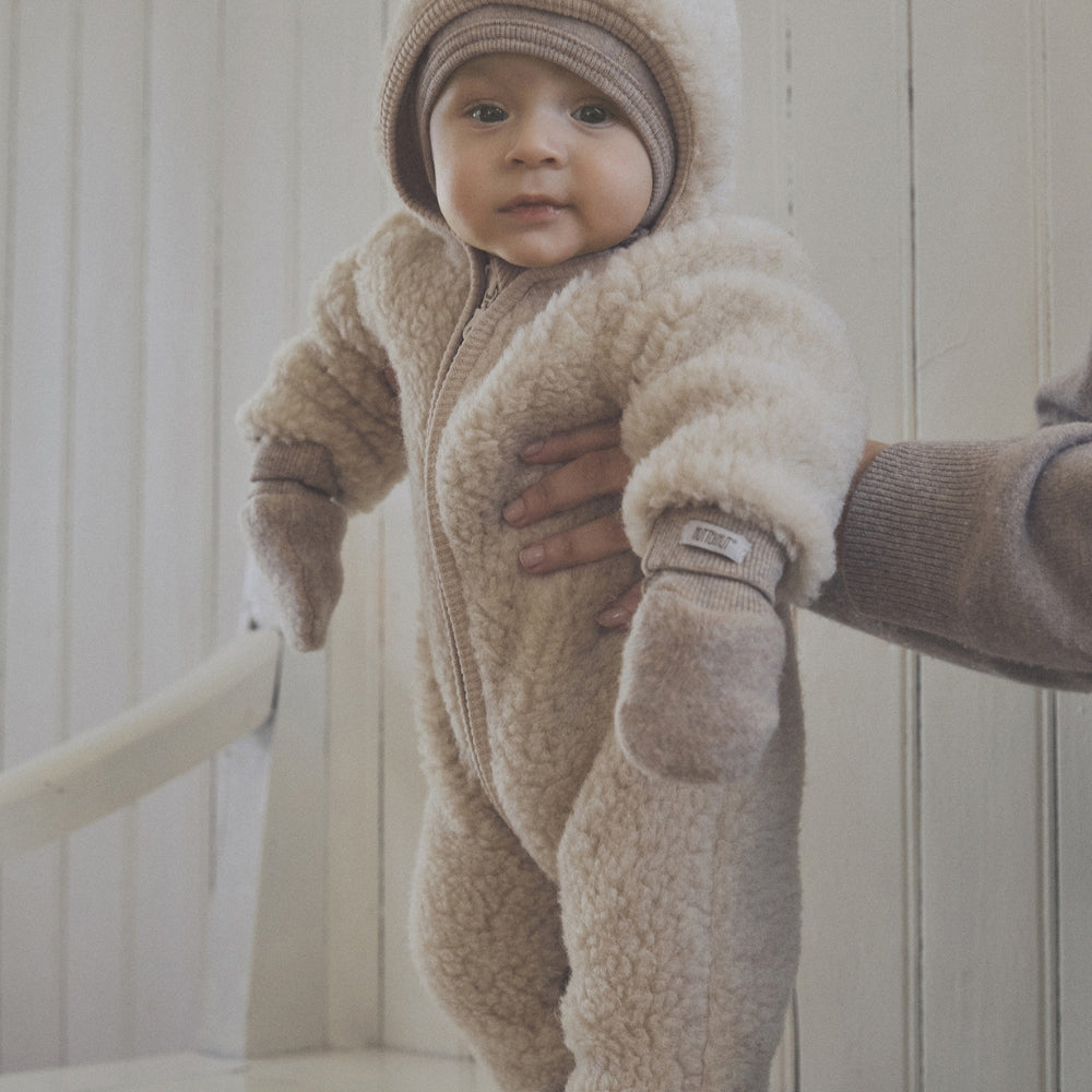 Der Baby-Overall aus Wolle von Huttelihut ist ein extrem warmes und kuscheliges Modell, das perfekt für kältere Tage ist.