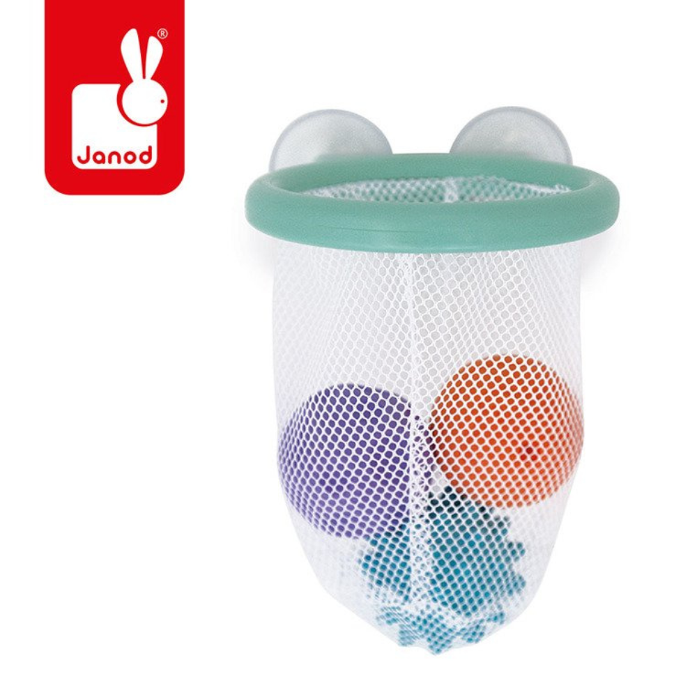 Janod Basketball Bad Spiel Korb mit Saugnäpfen + 3 Bälle 12 m+