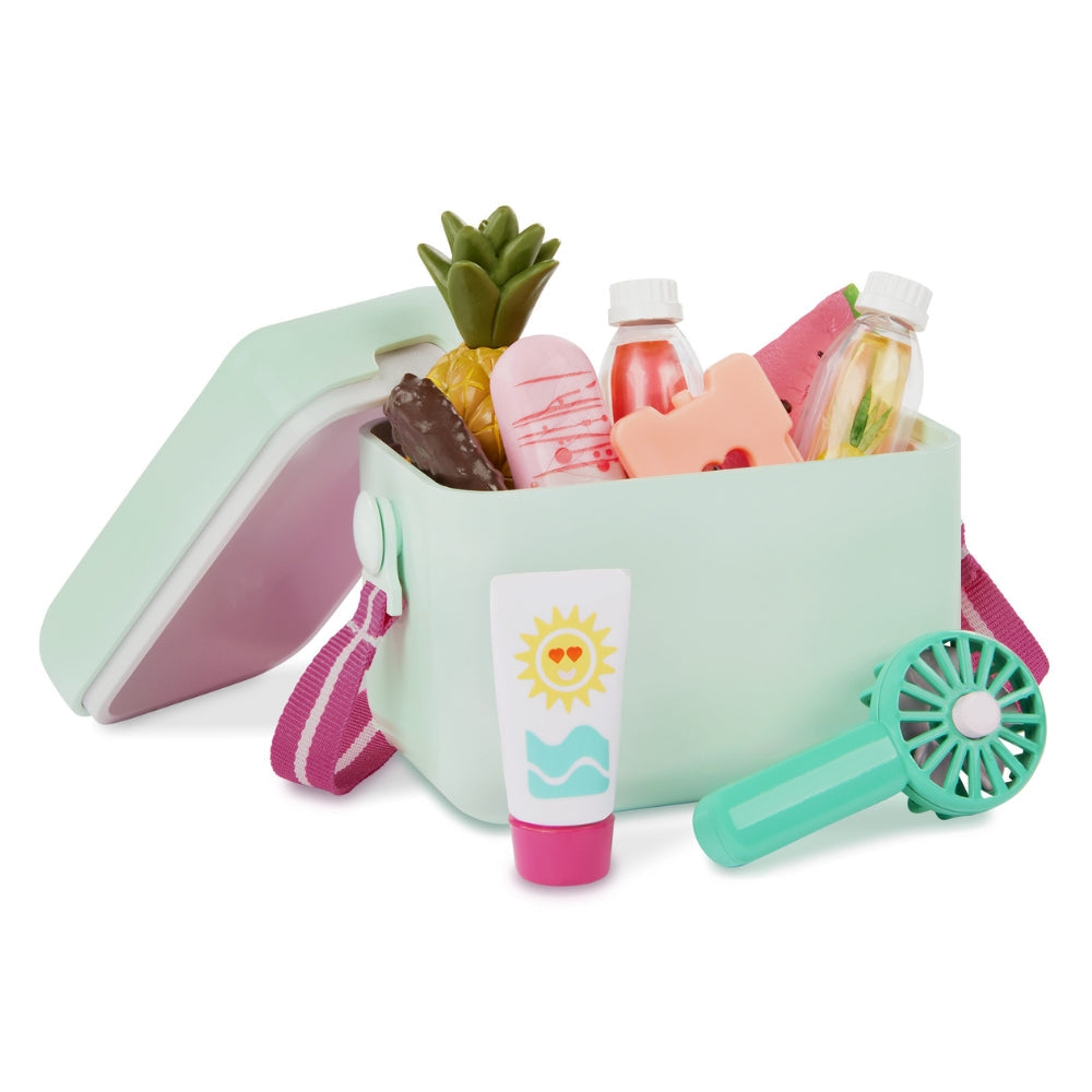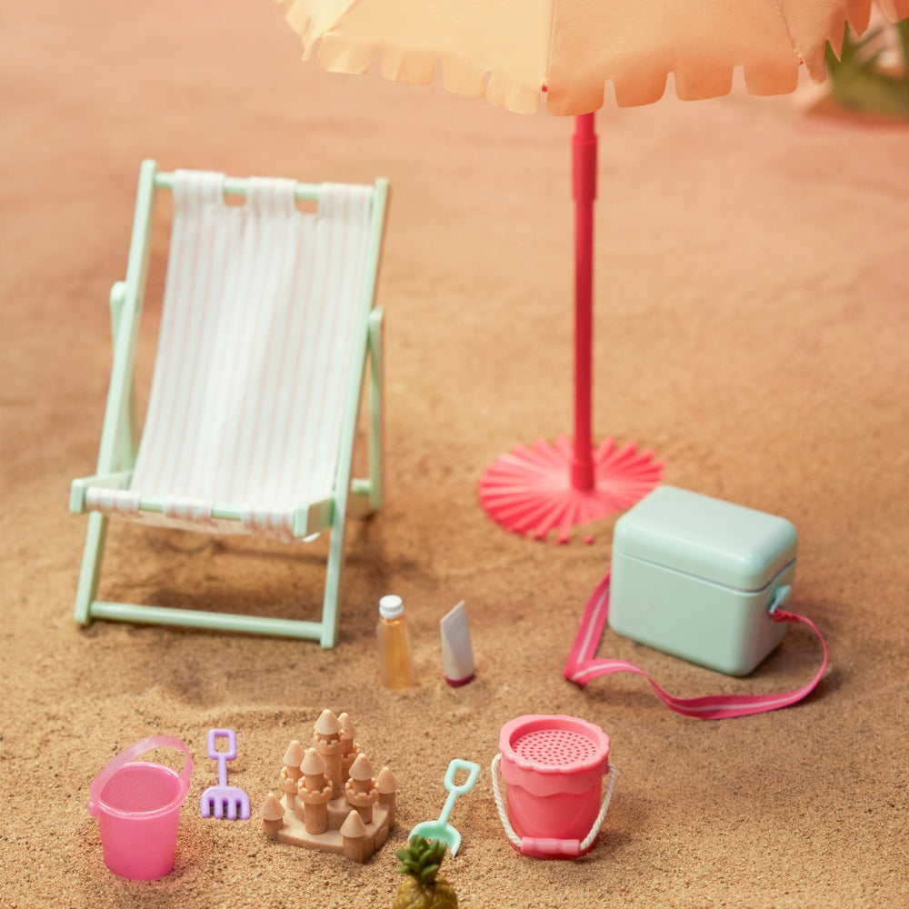 Mit diesem entzückenden Zubehörset kann deine Puppe die Sonne, die Entspannung und erfrischende Snacks genießen - wie in einem echten Urlaub!