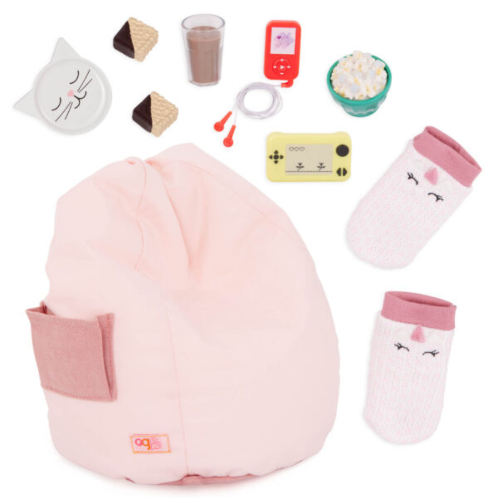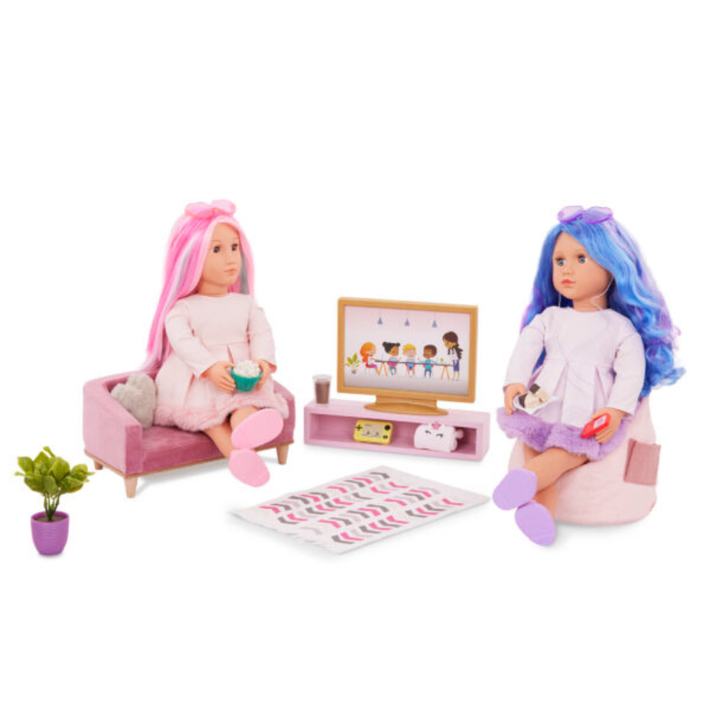 Das Puppen-Entspannungsset von Our Generation ist eine gemütliche Mini-Lounge, in der Ihr Kind seine eigenen Geschichten erfinden kann.