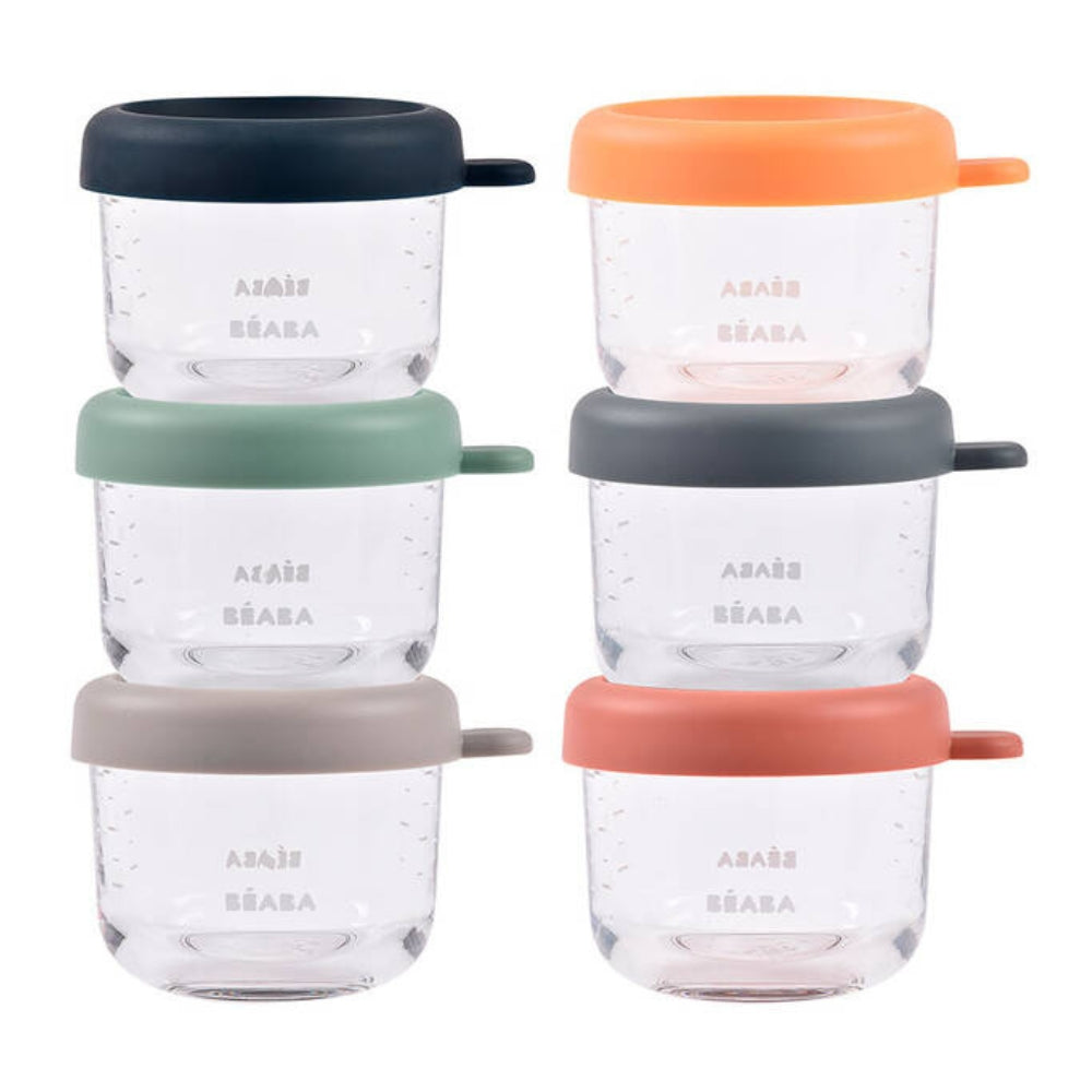 Beaba Glastiegel-Set mit Verschluss 6 x 150 ml Sunrise Farbmischung