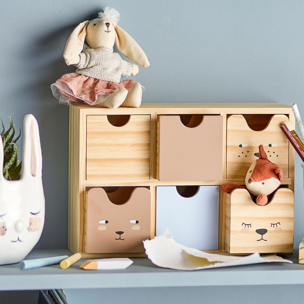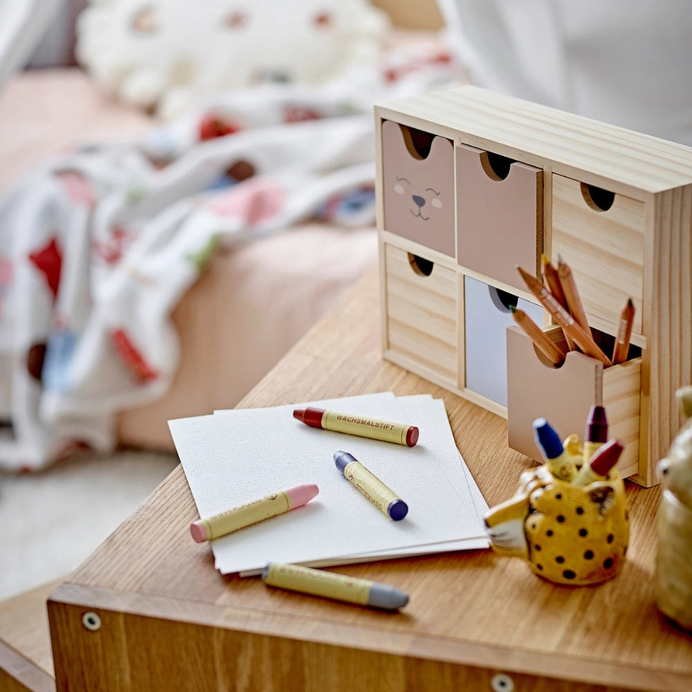 Der Schrank eignet sich hervorragend zur Aufbewahrung von Buntstiften, kleinem Spielzeug, Schmuck oder anderem Kinderkram.