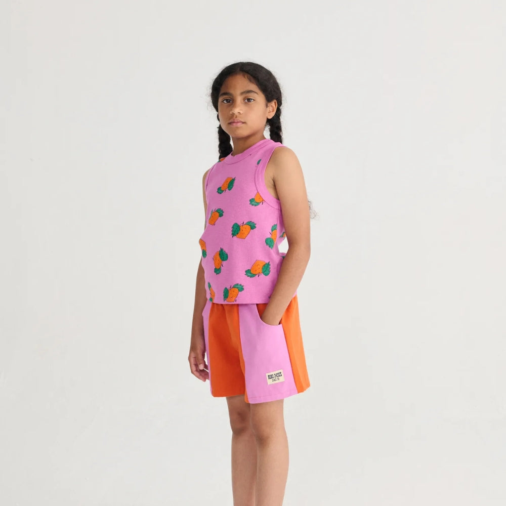 Die Farbkombination aus Rosa und Orange ist ein echter Hingucker und passt perfekt zum sommerlichen Styling, während die taillierte Passform dafür sorgt, dass die Mädchen-Shorts perfekt auf die Figur des Kindes abgestimmt sind.
