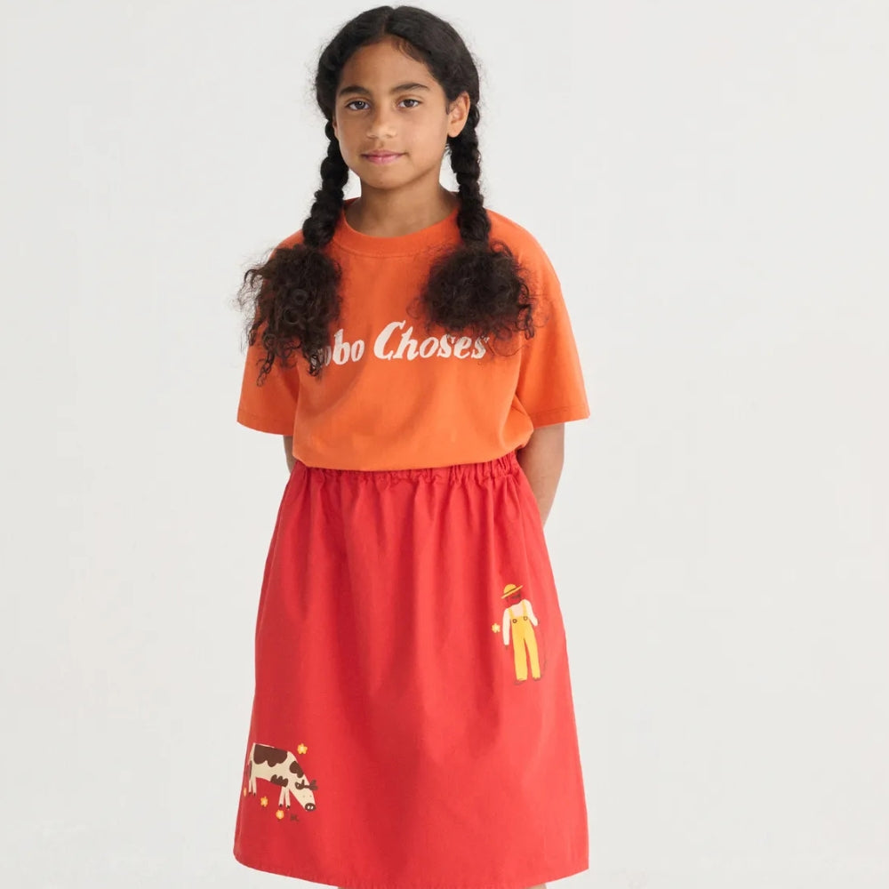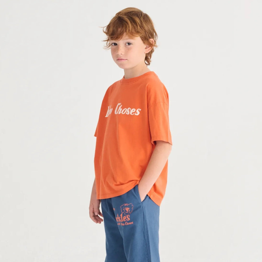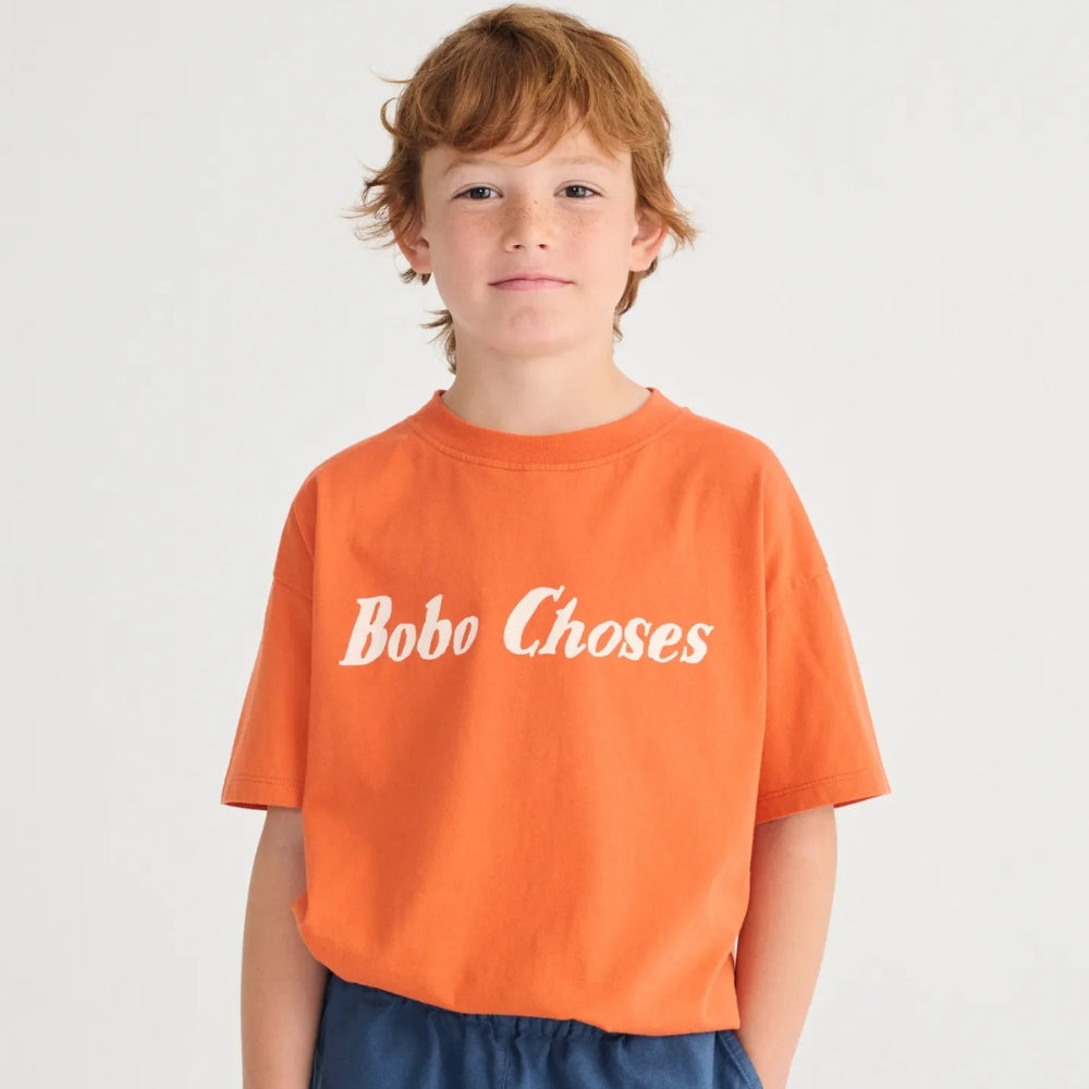 Das Bobo Choses Kinder-T-Shirt in leuchtendem Orange ist ein bequemes, alltagstaugliches Modell, bei dem der Komfort und die Bewegungsfreiheit Ihres Kindes im Vordergrund stehen.