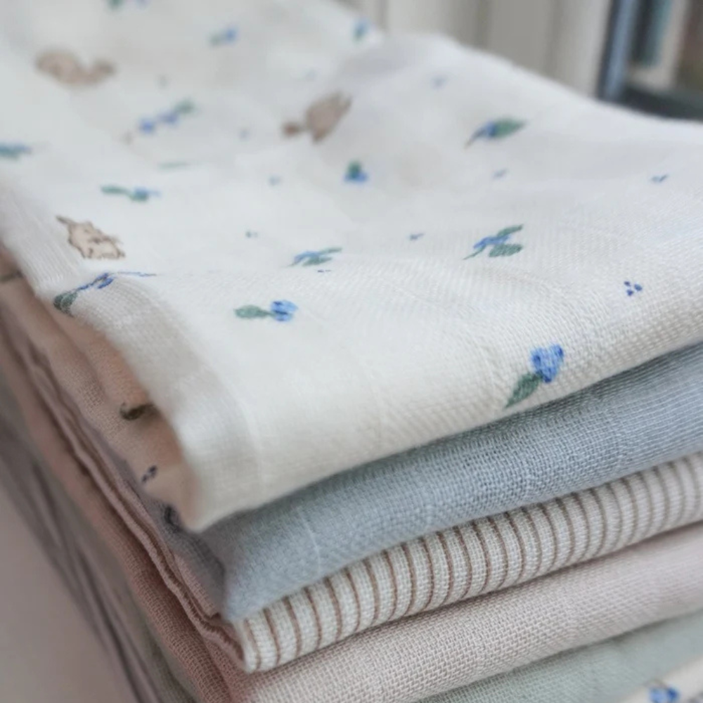 Der weiche Bio-Baumwollmusselin schmiegt sich an die Haut und eignet sich für alle Situationen, in denen Sie etwas Leichtes, Saugfähiges und Babyfreundliches brauchen.
