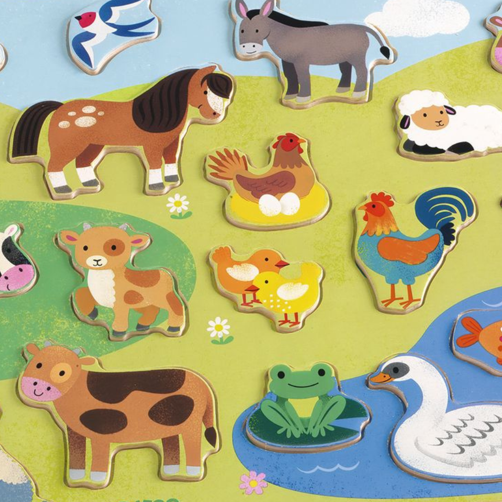 Ein Holzpuzzle mit einem Bauernhof-Thema von Djeco.