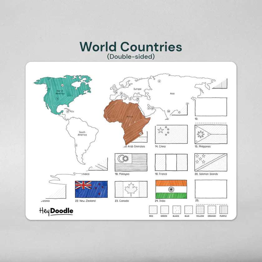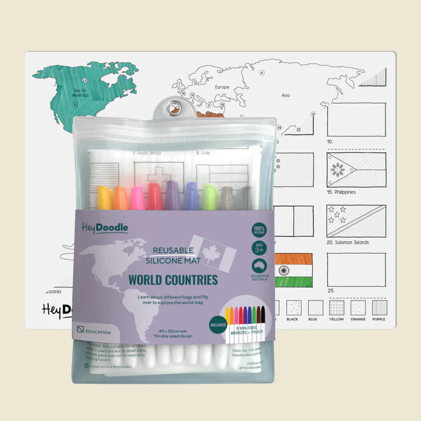 HeyDoodle Große doppelseitige Silikon-Malmatte - Weltkarte