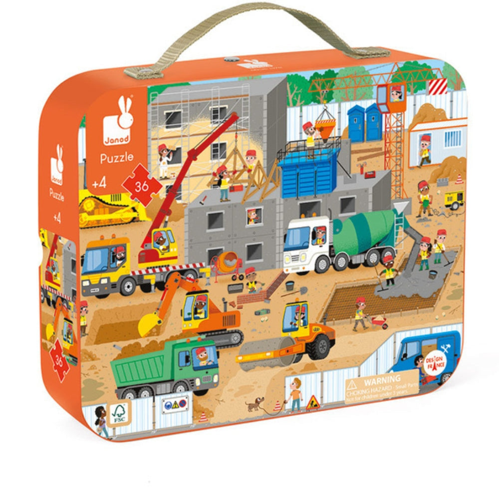 Janod Puzzle in einem Koffer Baustelle 36 Teile