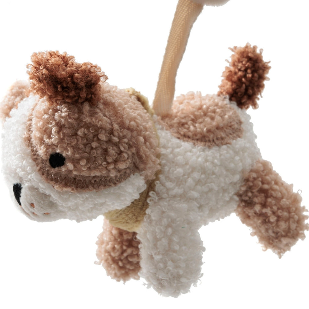 Der Anhänger für den Kinderwagen zieht mit seinen sanften Farben und freundlichen Tierfiguren die Aufmerksamkeit des Babys auf sich.