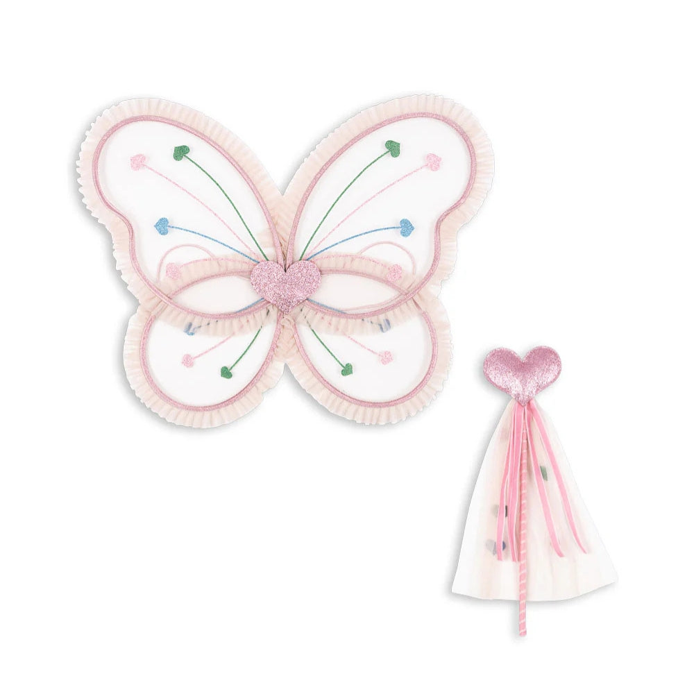 Zum Set gehören Flügel und ein herzförmiger Zauberstab. Damit ist das Feenkostüm perfekt für Verkleidungspartys, einen Faschingsball und das tägliche Spiel zu Hause.