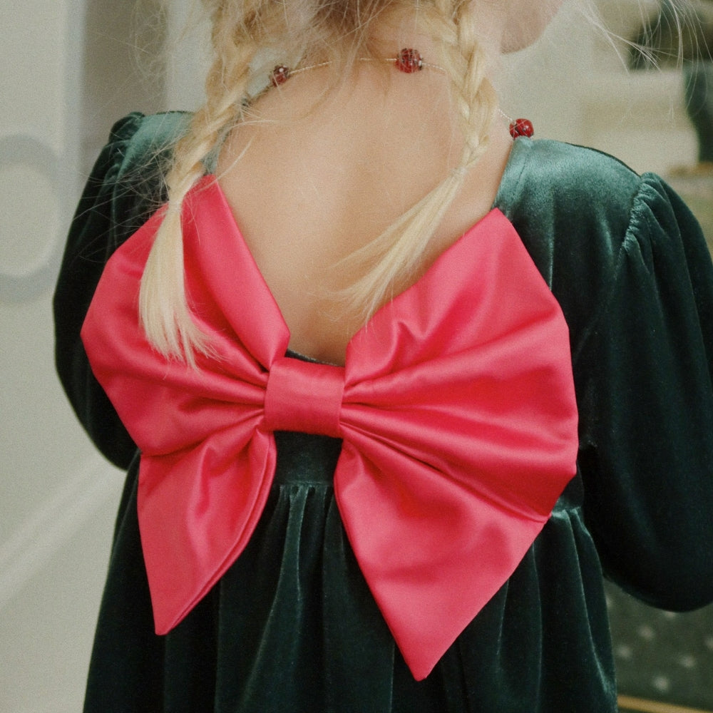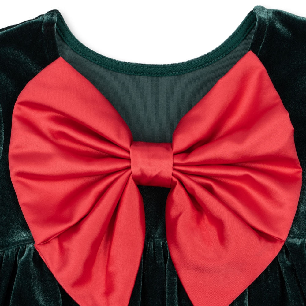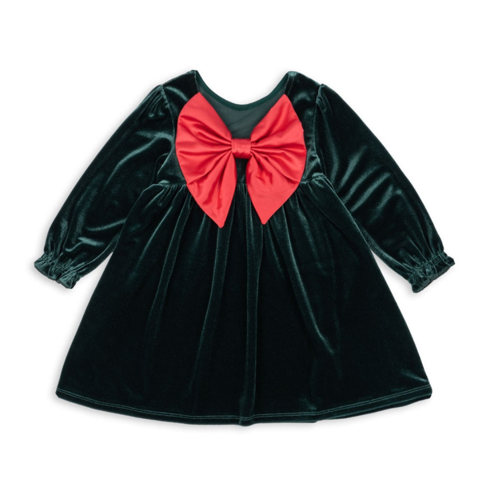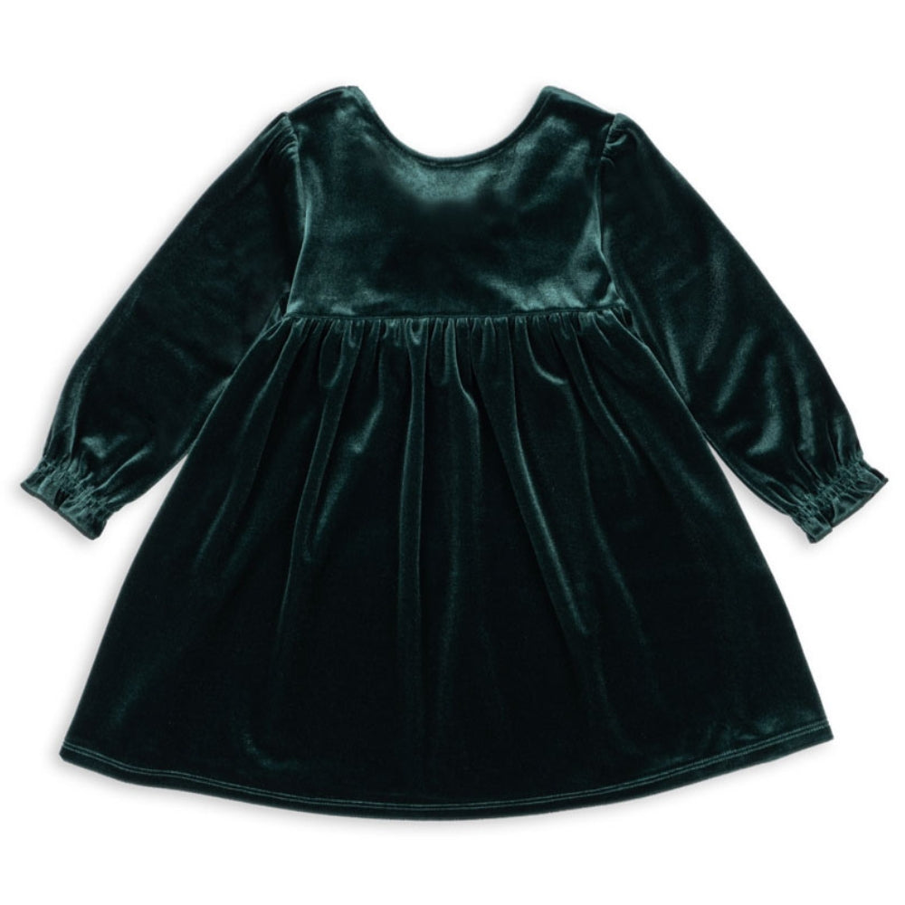 Konges Slojd Girl's Velvet Dress Gia Bow Pine Grove