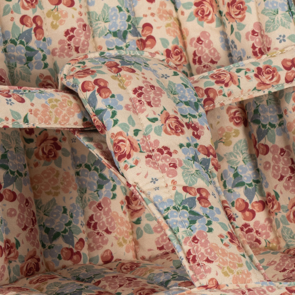 Der Puppenwagen wird mit einem Sicherheitsgurt und einer praktischen Tasche geliefert und ist durch den abnehmbaren Stoff leicht zu reinigen.