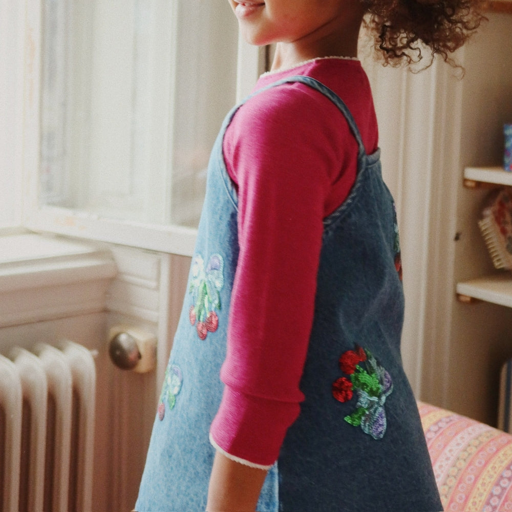 Dank der durchdachten Stoffzusammensetzung und der sorgfältigen Verarbeitung ist die Mädchenbluse von Konges Slojd das ganze Jahr über einsatzbereit.