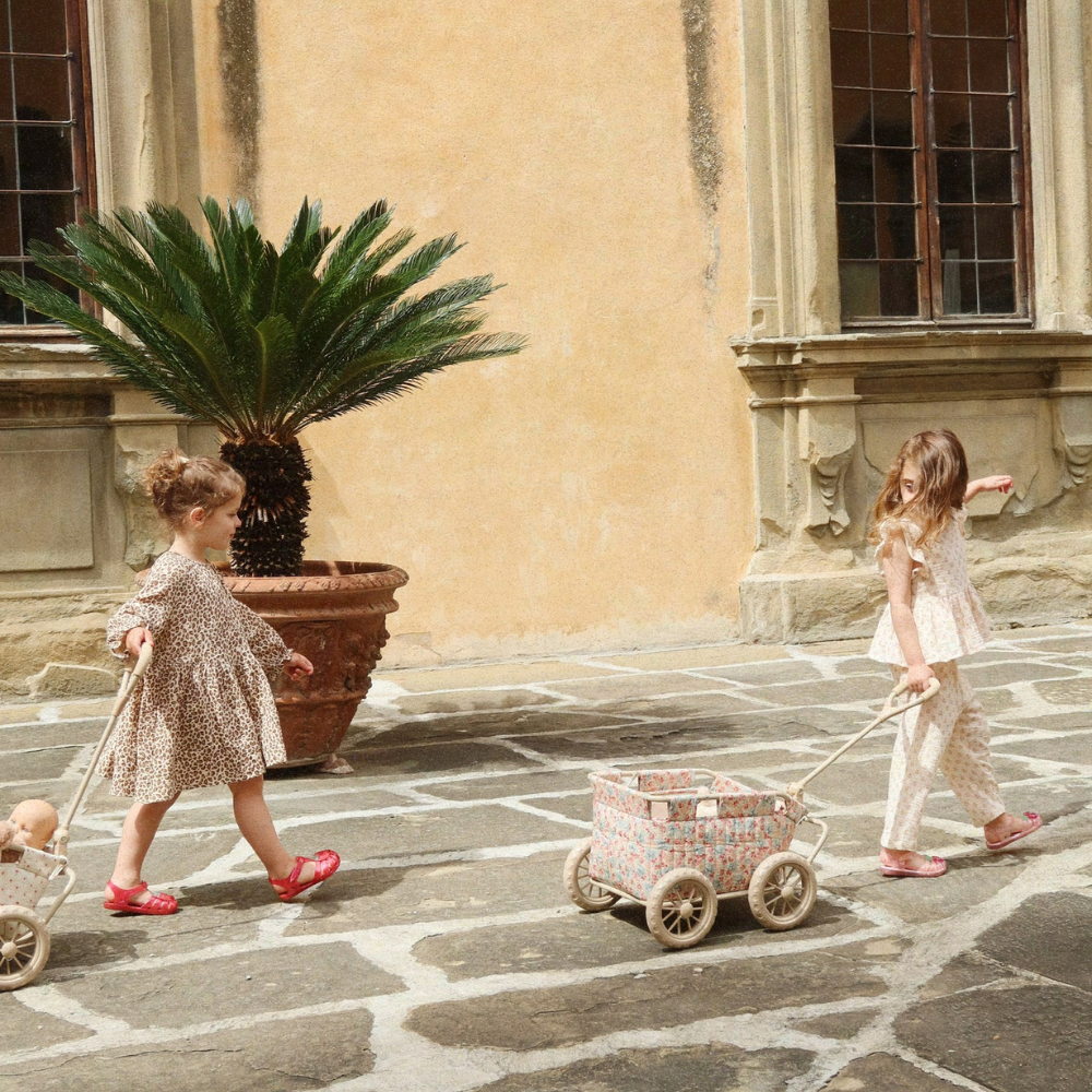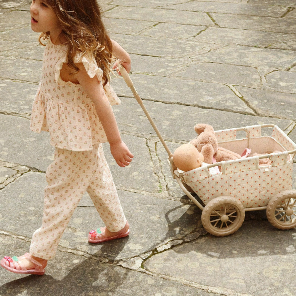 Der Konges Slojd Puppenwagen ist ein wunderschön detailliert gestalteter Spielwagen, mit dem Ihr Kind alle seine Lieblingsteddys, -puppen und -kuscheltiere auf einen Spaziergang durch das Haus oder auf die Terrasse mitnehmen kann.