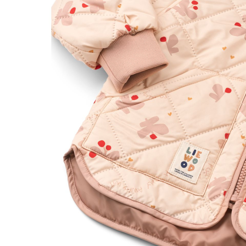Liewood hat auch an die praktischen Details gedacht: Der Stoff ist feuchtigkeitsabweisend und reflektierende Elemente erhöhen die Sichtbarkeit bei Dunkelheit.
