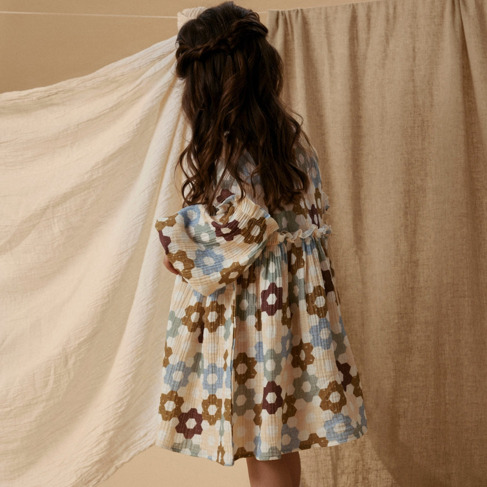 Dieses Kleid für Mädchen von Lil' Atelier ist die perfekte Wahl für Frühlings- und Sommertage, an denen Leichtigkeit, Freiheit und Komfort wichtig sind.