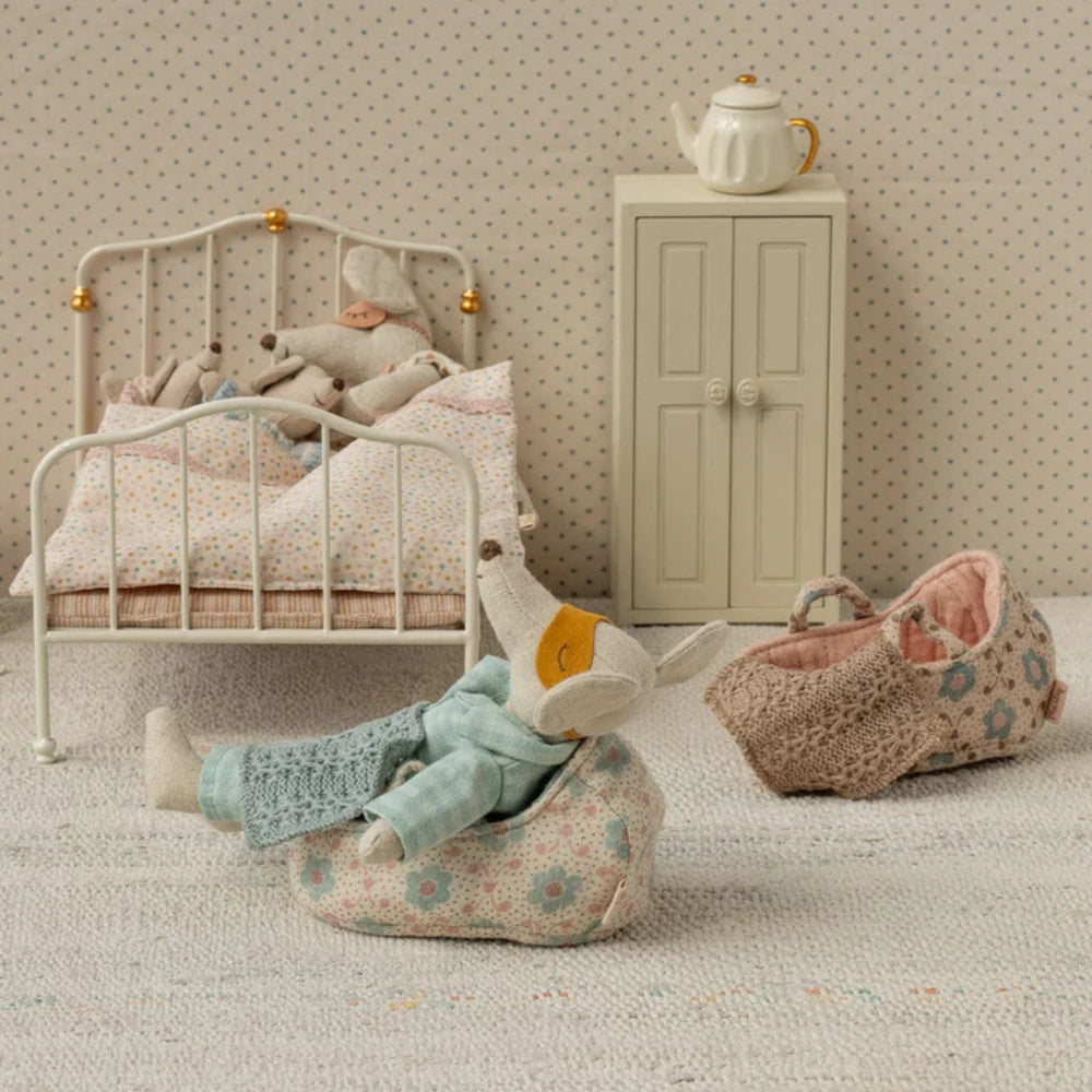 Die Miniatur-Puppentragetasche von Maileg ist ein niedliches Accessoire, mit dem Ihr Kind beim Spielen fantasievolle Szenen kreieren kann.
