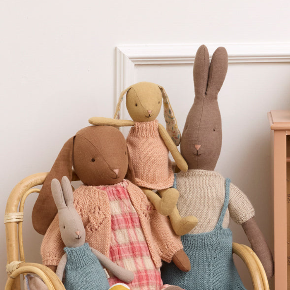 Maileg - ein klassischer, weicher und liebenswerter Hase im Kleid, der sofort zum Kuscheln und Spielen einlädt.