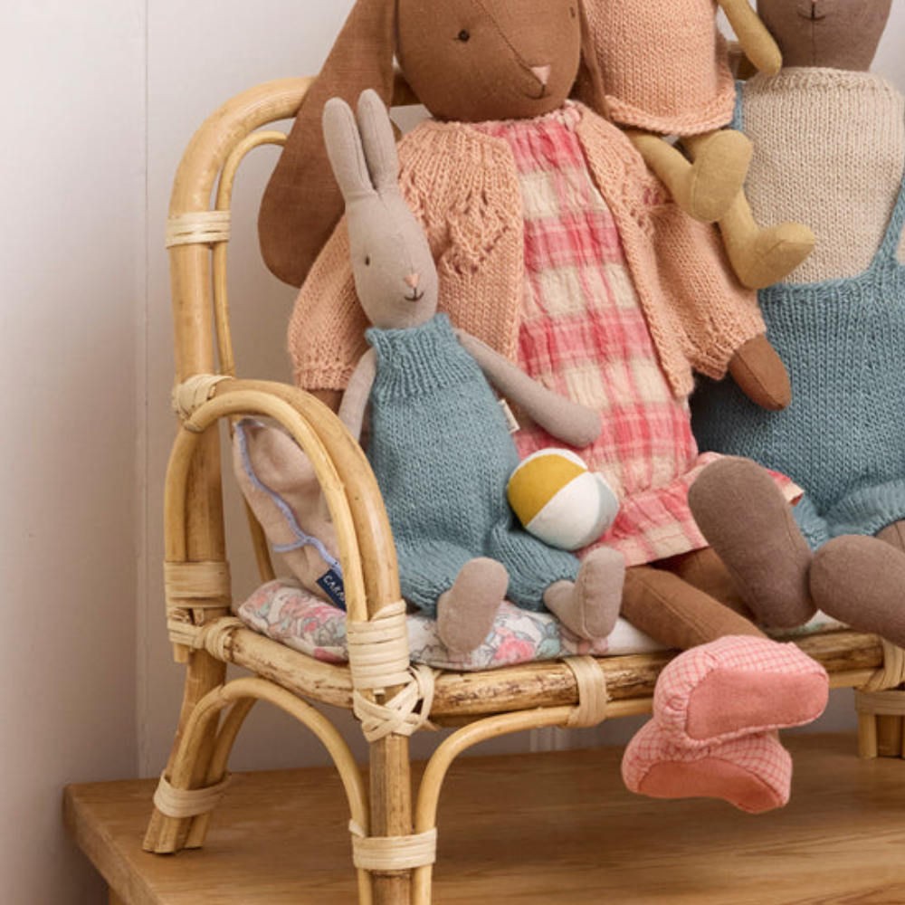 Der Hase in Latzhose von Maileg ist ein weicher, liebenswerter Freund, mit dem man jeden Tag kuscheln und spielen kann.