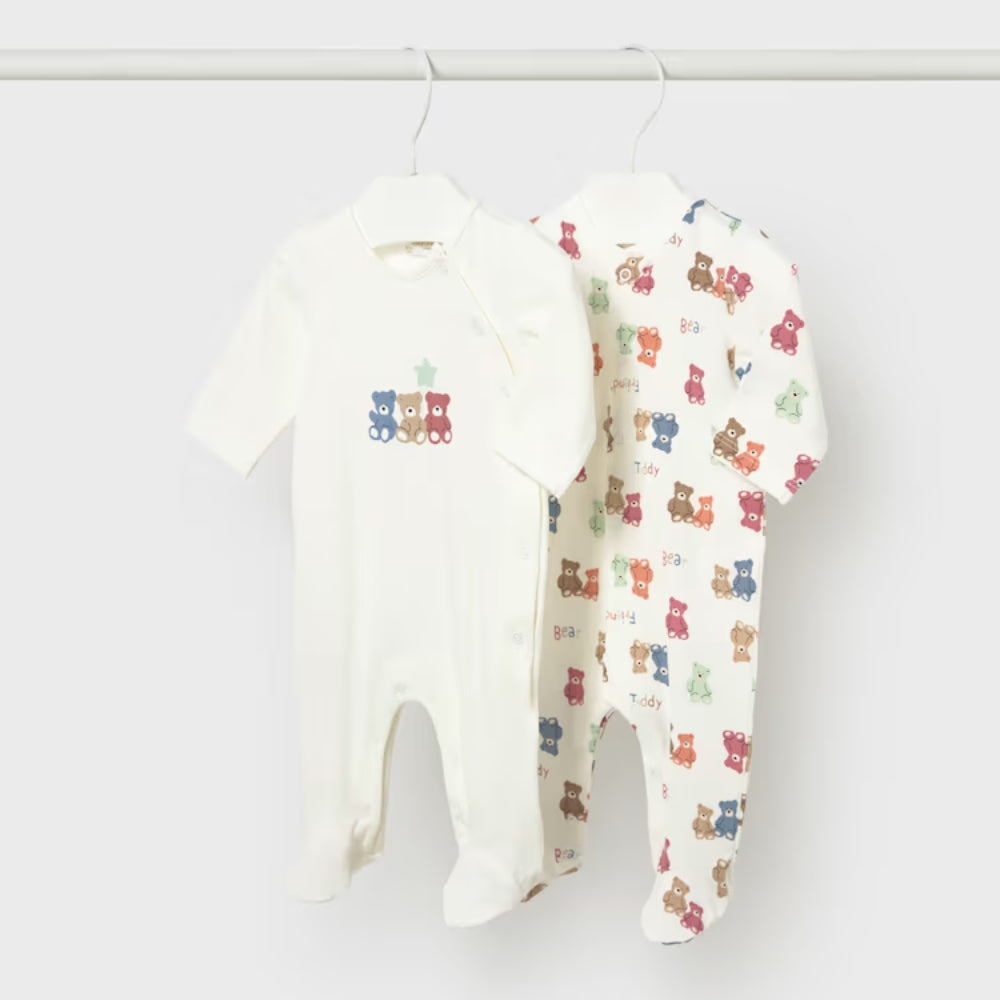 Dieses praktische Mayoral-Set besteht aus zwei langen Schlafanzügen, die mit Rücksicht auf die zarte Babyhaut entworfen wurden.