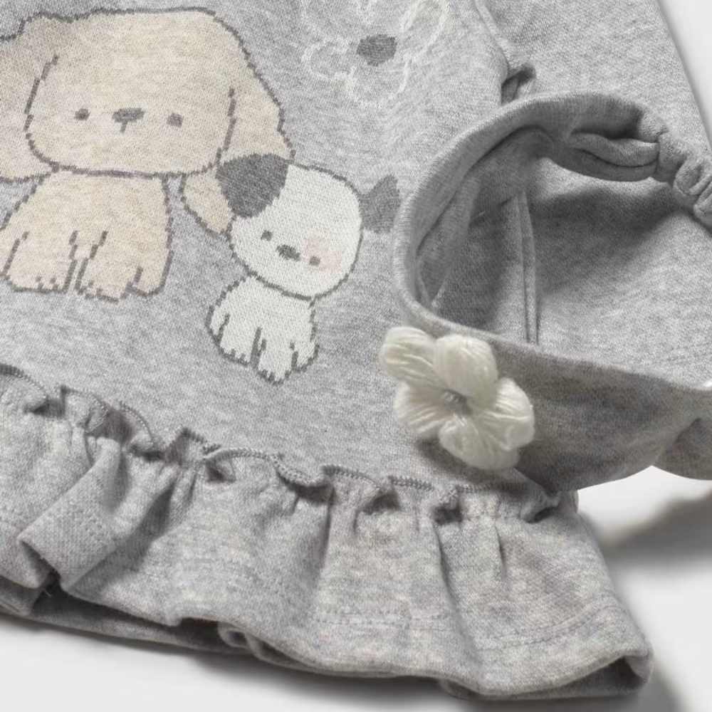 Zum Set gehört ein passendes Stirnband mit Blumenapplikation - ein toller Akzent, der das Styling harmonisch abrundet.