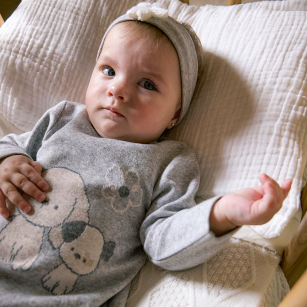 - Verfügbare Größen: 2-4M, 4-6M, 6-9M, 12M