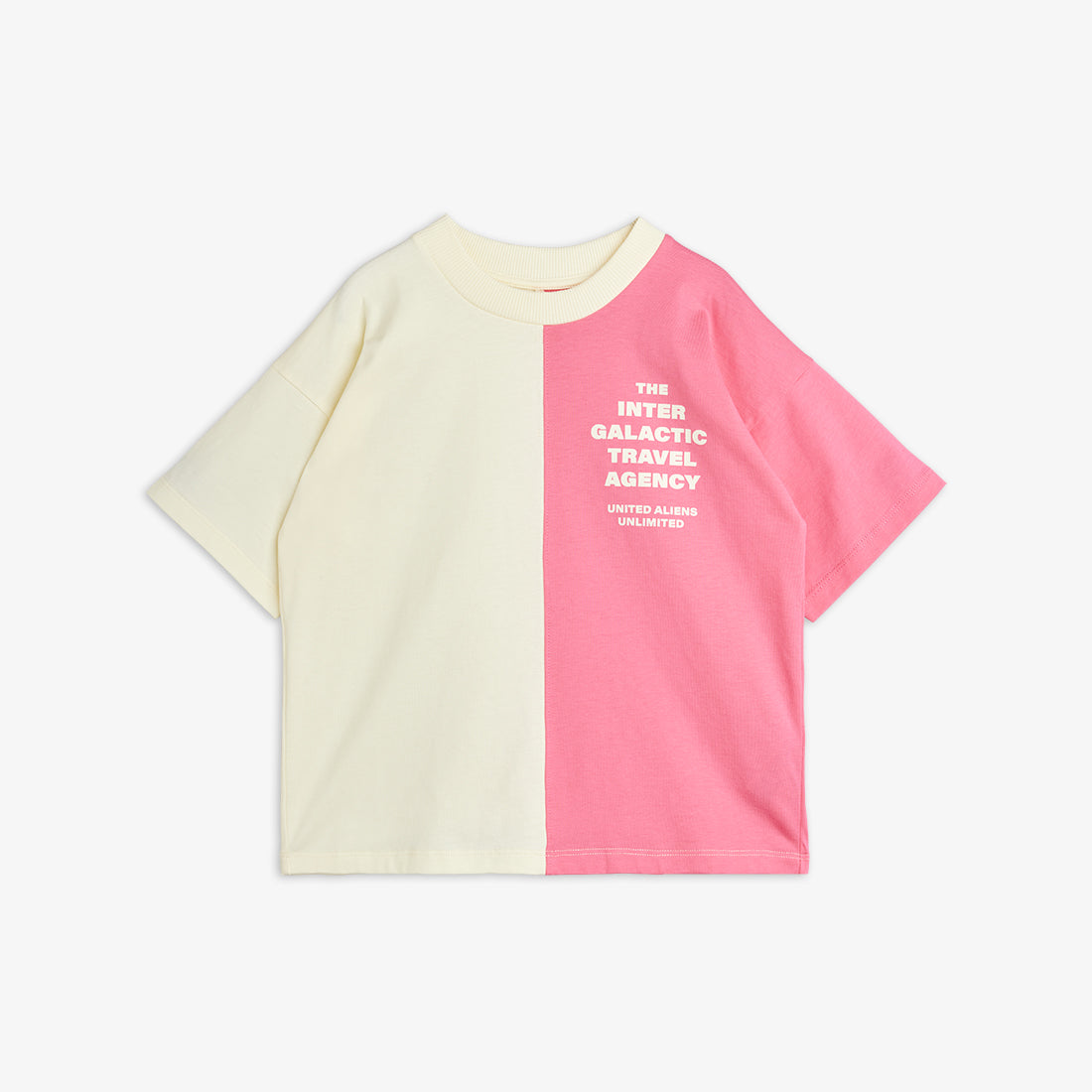 Die zweifarbige Aufteilung zieht die Blicke auf sich und macht das Kinder-T-Shirt zu einem starken Styling-Element.