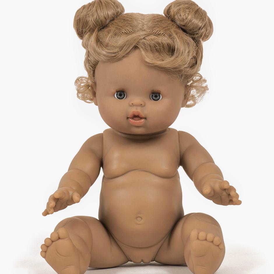 Die Puppe ist 34 cm groß und hat keine Kleidung.