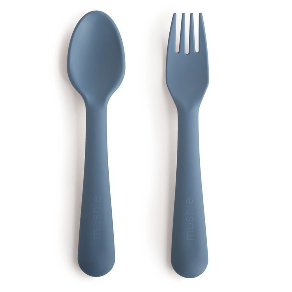 Mushie Baby-Besteck Gabel und Löffel - Twilight Blue