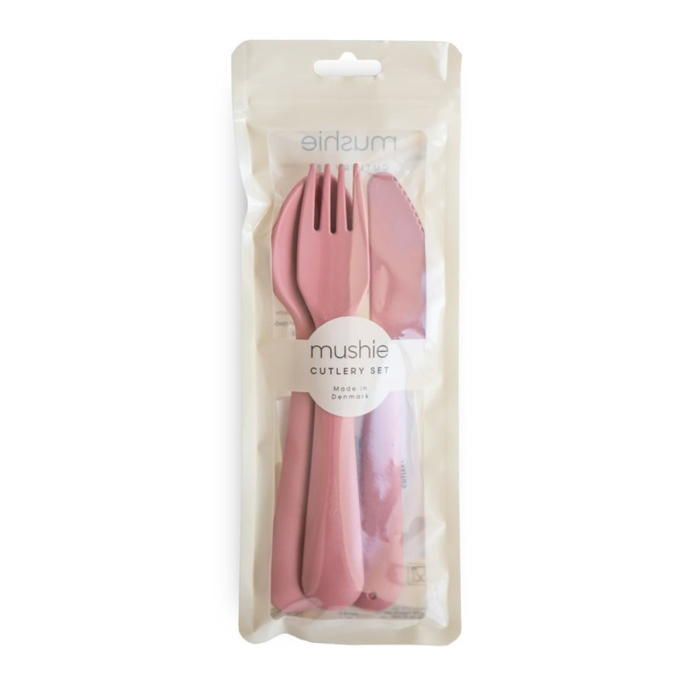 Mushie Baby-Besteck-Set - Staubiges Rosa