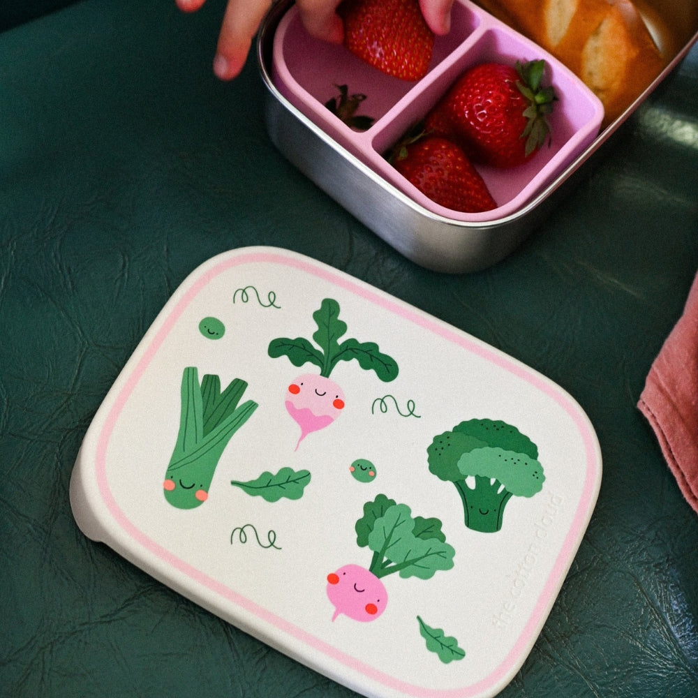 The Cotton Cloud Kinder-Lunchbox aus rostfreiem Stahl mit herausnehmbaren Veggie Pals Trennwänden