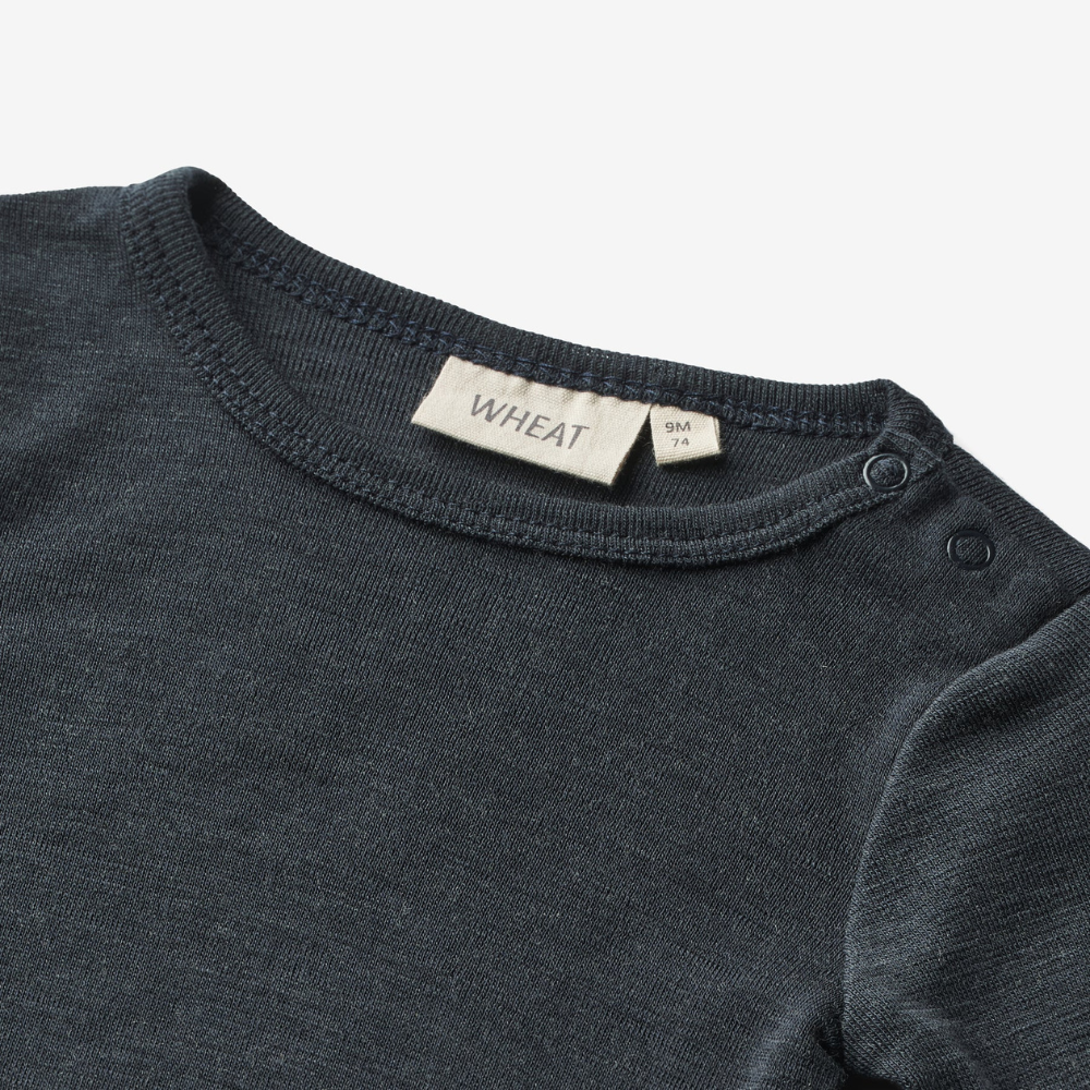 Wheat Babybody mit langen Ärmeln aus Merinowolle Lucca navy
