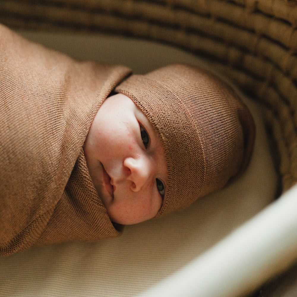 Das Set aus Merinowolle von Yarnami by Poofi ist für Komfort und Weichheit ab den ersten Tagen des Babys konzipiert.